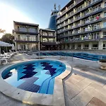 Summer H. Studio Sunny Beach的住客可用私人游泳池.该公寓离沙丘海滩大约1公里. 这套公寓位于阳光海滩,距离行动水上公园仅有几步之遥;设有配微波炉,电热水壶 和咖啡壶/茶壶的小厨房以及1间浴室.